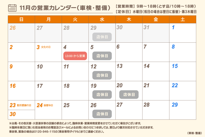 0800-816-6457予約済の方、オイル交換・1年点検・修理等