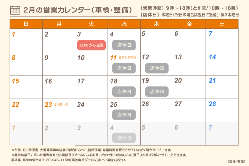 0800-816-6457予約済の方、オイル交換・1年点検・修理等